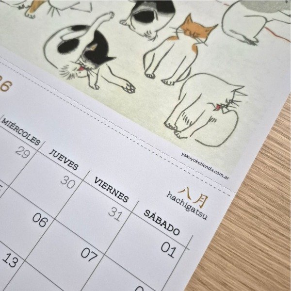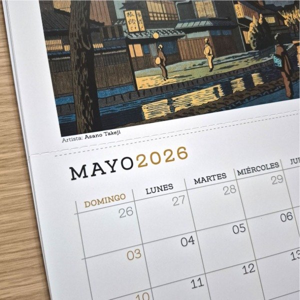 Nuestro calendario postal incluye 12 páginas tamaño A4 (21 x 29,7 cm), impresas a color en papel ilustración 300 gr, con una imagen por mes inspirada en Japón y su arte.