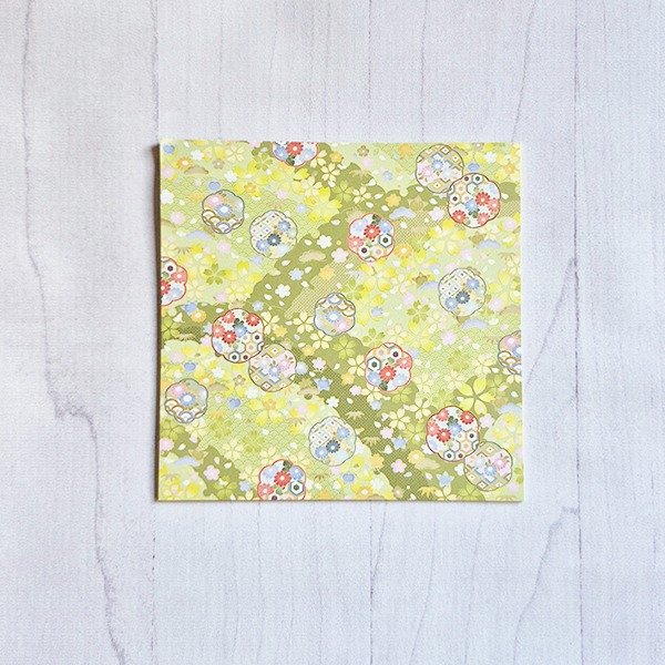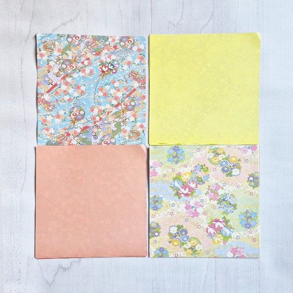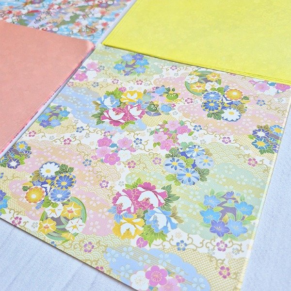 Este set incluye 36 papeles de origami: 4 motivos diferentes de patrones japoneses tradicionales inspirados en la naturaleza, 9 de cada uno.