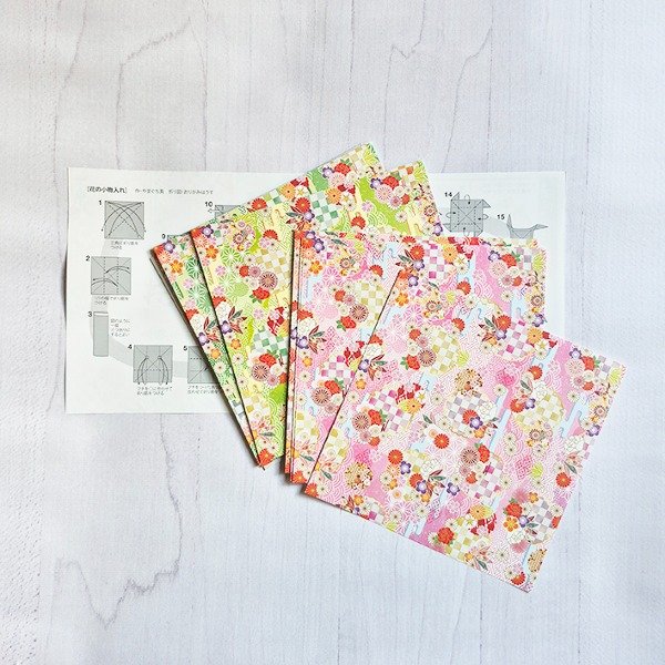Este set incluye 32 papeles de origami: 8 motivos diferentes de patrones japoneses tradicionales, 4 de cada uno.